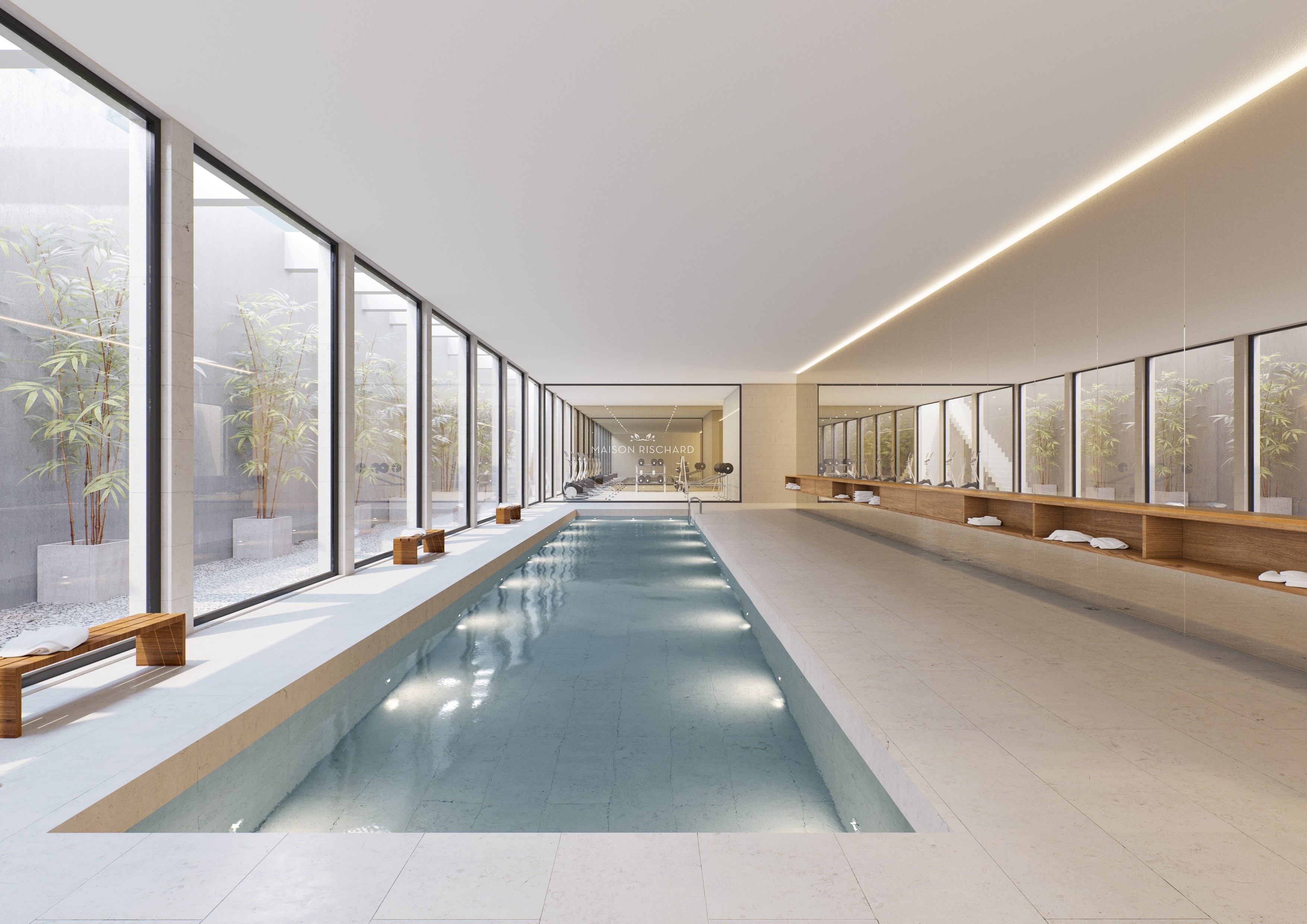 Parc Rischard lies at the heart of a magnificent private landscaped park and the project offers a number of concierge oriented services for the residents. Besides the renovation of the monumental and protected historical villa into a number of very exclusive residences, two luxurious buildings were developed with high-quality fittings and outstanding elegant and subdued architecture by Tatiana Fabeck. The Villa (Maison Rischard) acts as a centrepiece to the entire development and contain the fitness and wellness area with its swimming pool and massage areas. Parc Rischard is truly a new way of living.