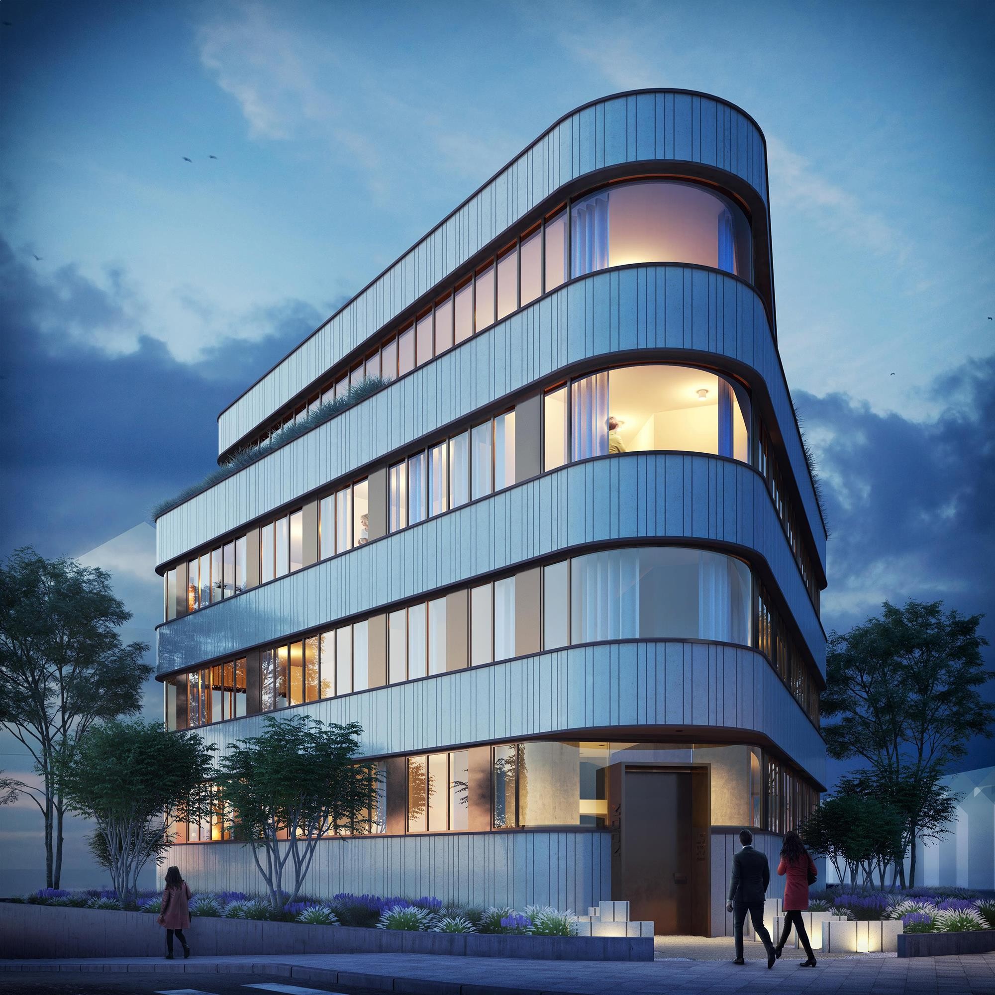 Ce bâtiment résidentiel de luxe avec sa façade en pierre calcaire, verre et aluminium est situé sur un terrain en coin de rue avec vue dégagée. D’où le nom du projet : Nook - coin en anglais.