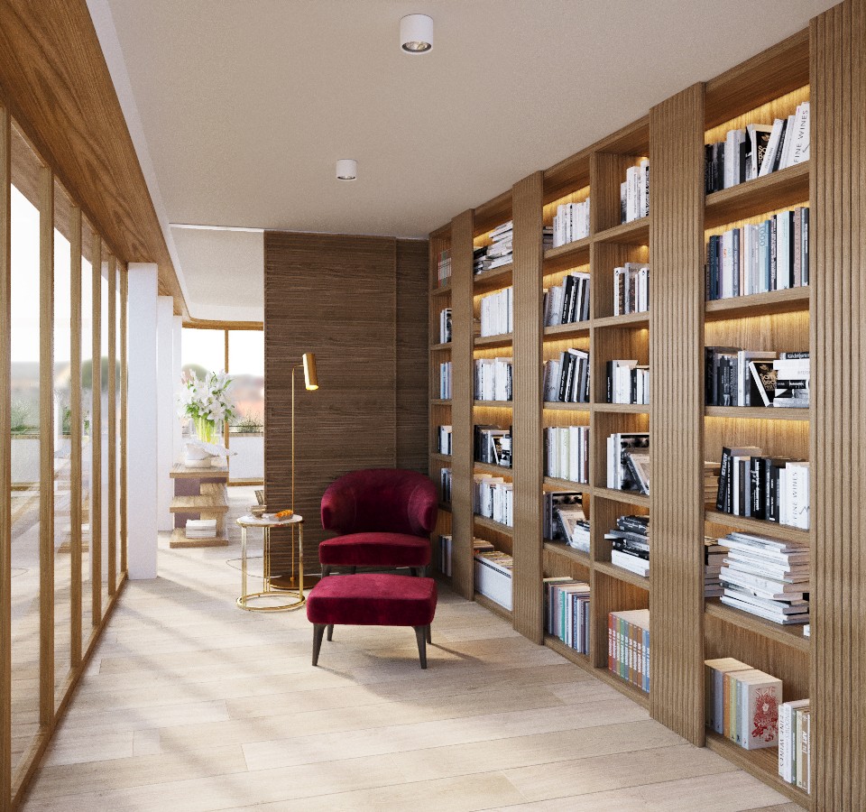 This luxury residential building with its facade in limestone, glass and aluminium is set on a corner plot with open views. Hence the name of the project: Nook.