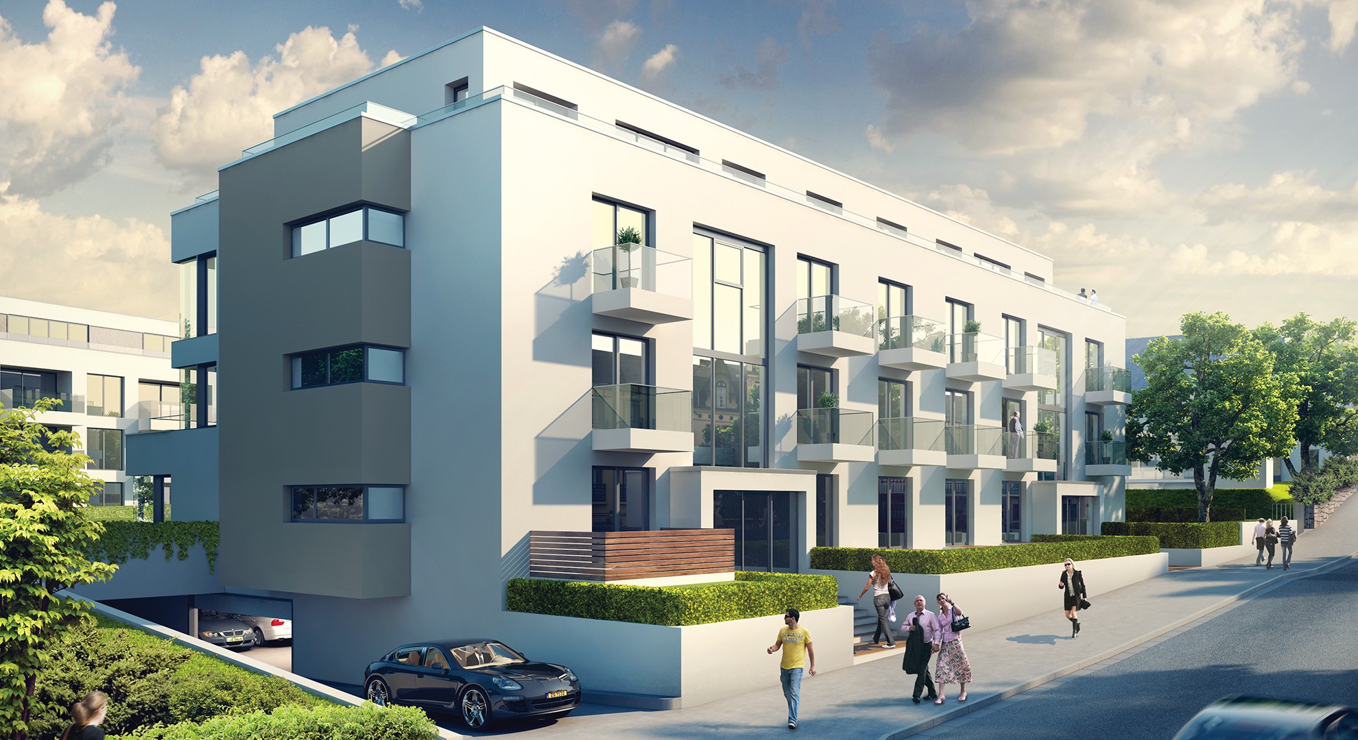 Parc Rischard lies at the heart of a magnificent private landscaped park and the project offers a number of concierge oriented services for the residents. Besides the renovation of the monumental and protected historical villa into a number of very exclusive residences, two luxurious buildings were developed with high-quality fittings and outstanding elegant and subdued architecture by Tatiana Fabeck. The Villa (Maison Rischard) acts as a centrepiece to the entire development and contain the fitness and wellness area with its swimming pool and massage areas. Parc Rischard is truly a new way of living.
